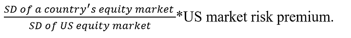 By using the SD of a country’s market, Mexico, for example, we can know how risky Mexico’s market is relative to U.S. market and qualify it by multiplying the US market risk premium.